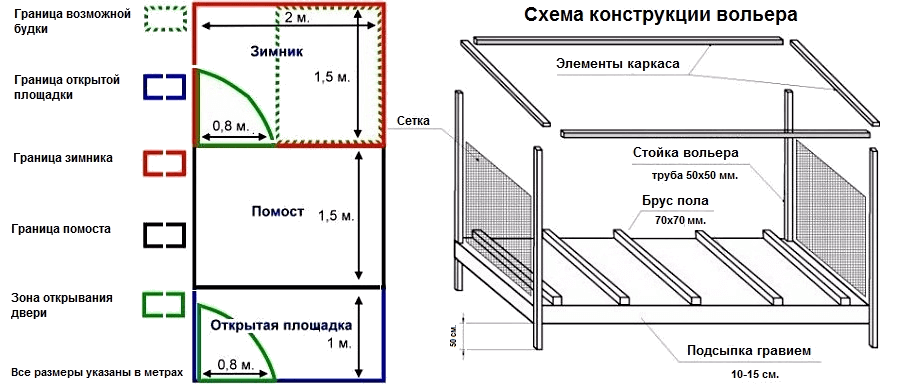 Прежде чем приступить к созданию вольера, необходимо определить его размер, место для установки и материал изготовления. При создании конструкции вольера должны быть соблюдены следующие (минимальные) требования: