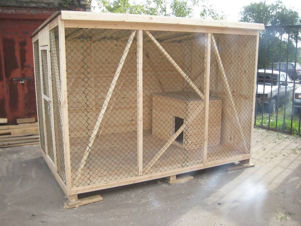 - полностью открытые (огороженный сеткой участок с будкой внутри);