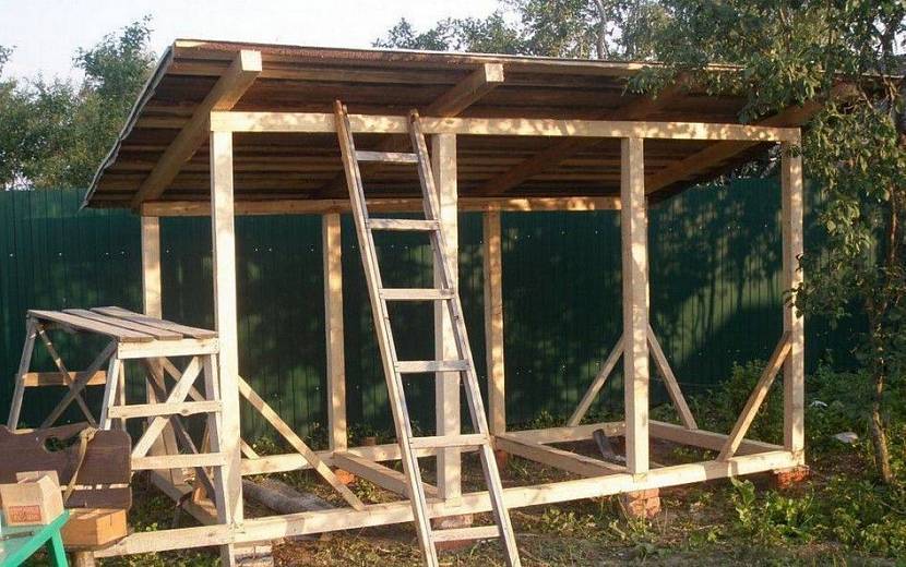 На четвёртом этапе проводится установка кровли. Крыша должна иметь скос к тыльной части конструкции для стока воды