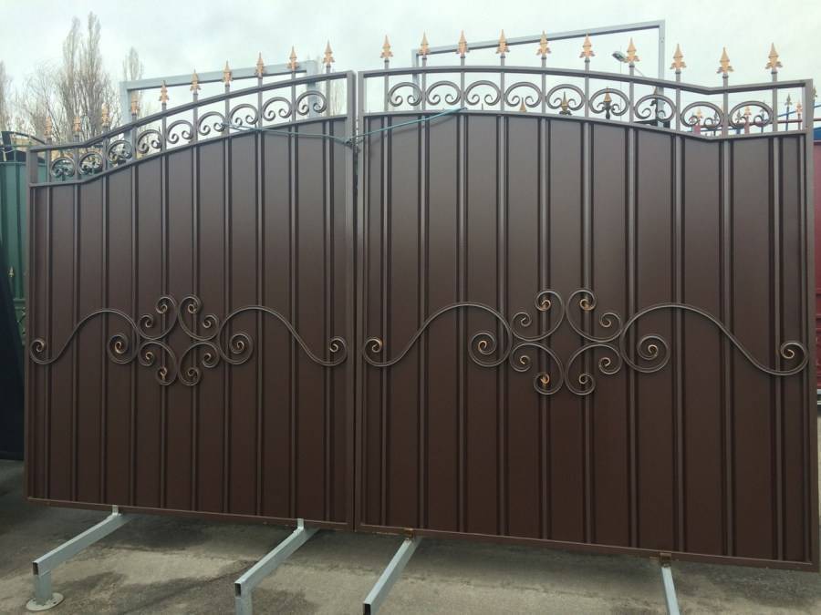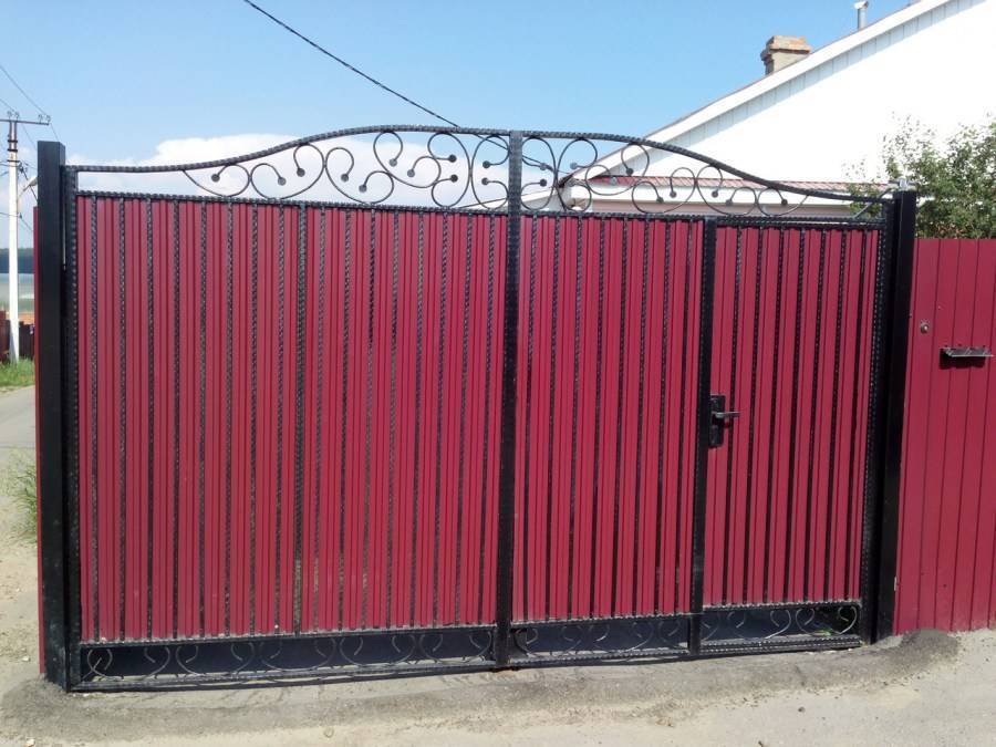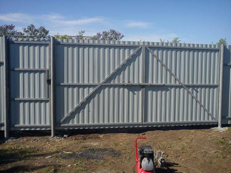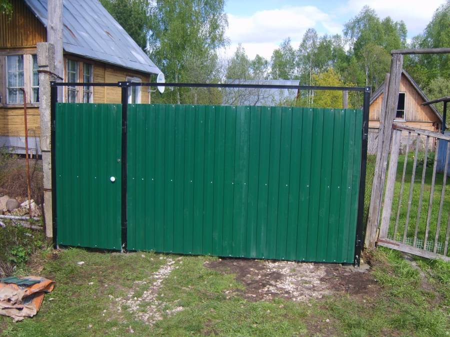 Что касается окраски или оцинковки, то желательно, чтобы профнастил на воротах был таким же, как и на заборе. Излишняя пестрость не прибавит эстетичности.