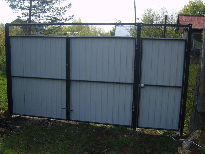 - Профнастил. Лист заказывается по высоте будущей калитки.