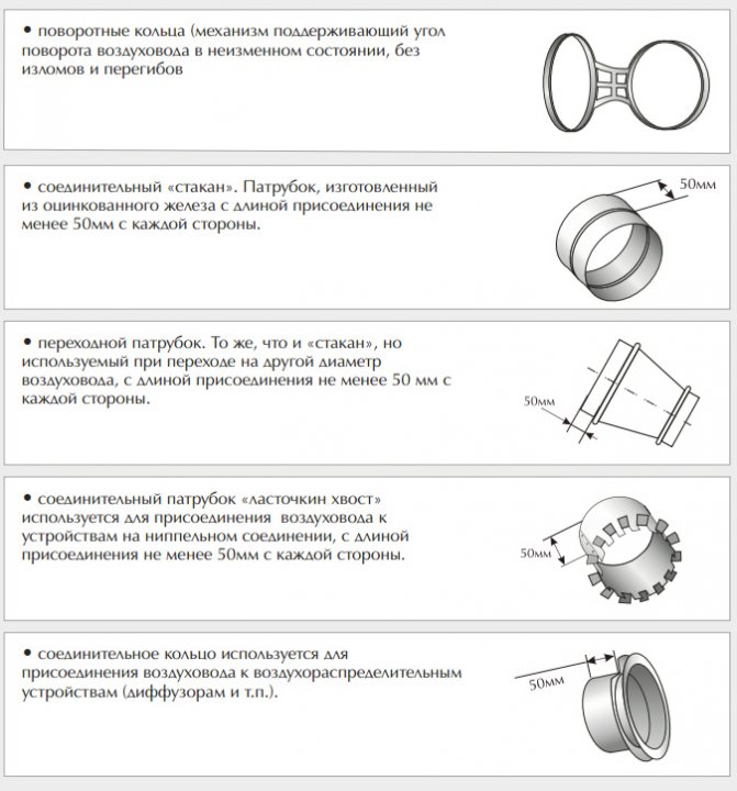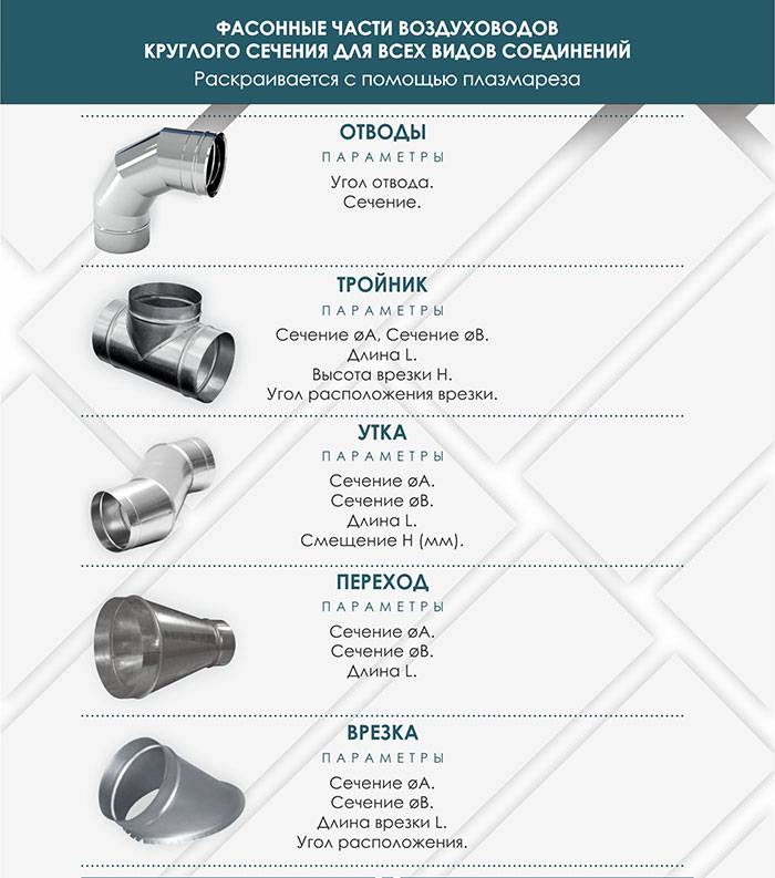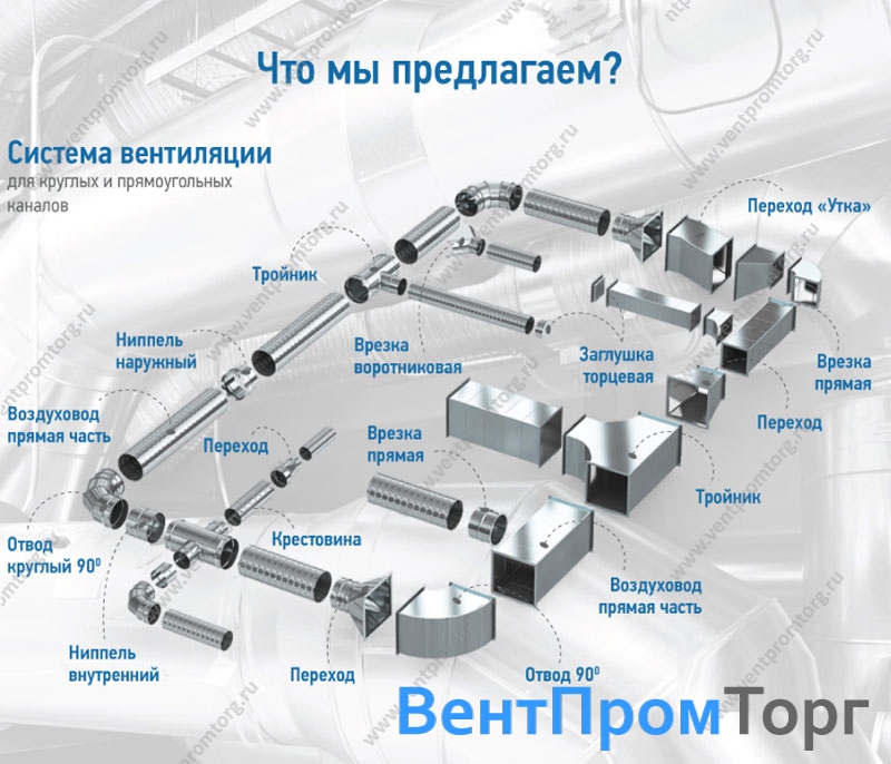 Ниже детальнее рассмотрим основные характеристики деталей, по которым внутри вентиляционной системы движется воздух.