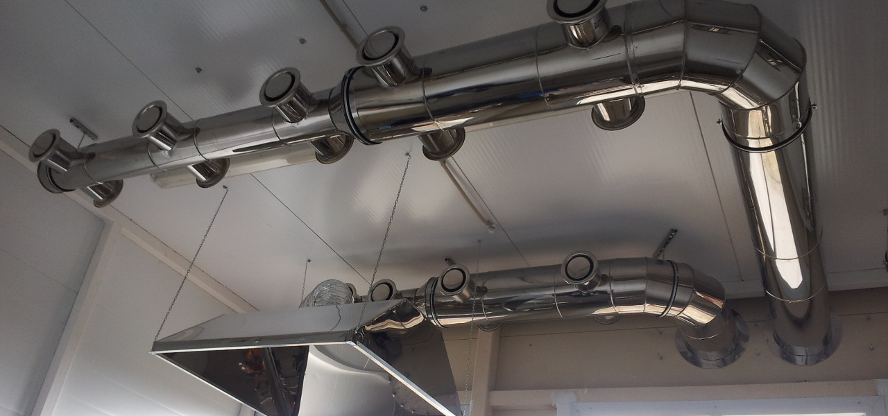 Также оборудование из нержавейки применяется на открытых участках, где невозможно применить обычные воздуховоды, например, в транспорто- и судостроении.