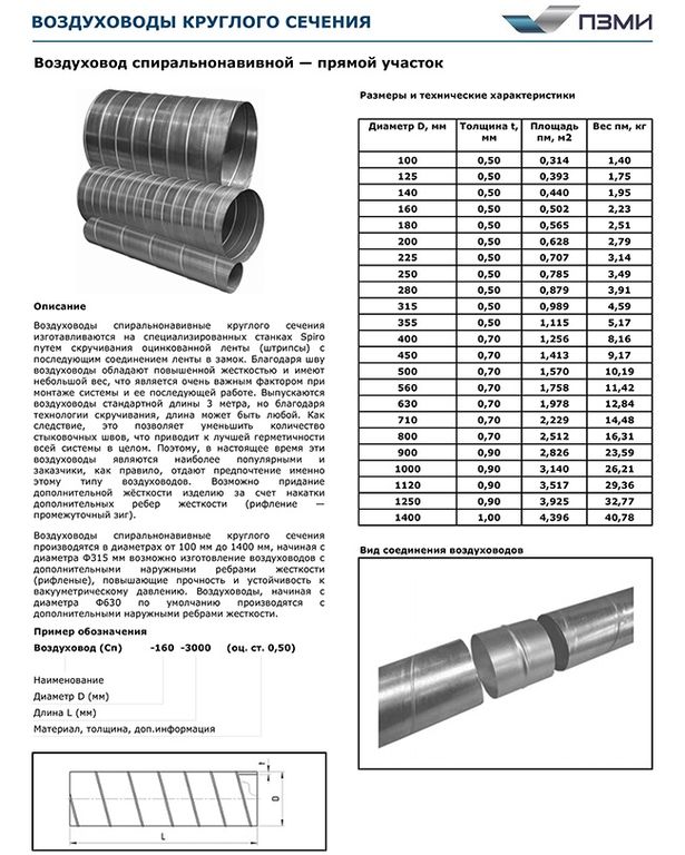 Еще одной особенностью таких изделий, и одновременно большим преимуществом, является отсутствие сварных швов. Это уменьшает сопротивление движущемуся воздуху, что дает возможность применять вентиляторы с более низкой мощностью.