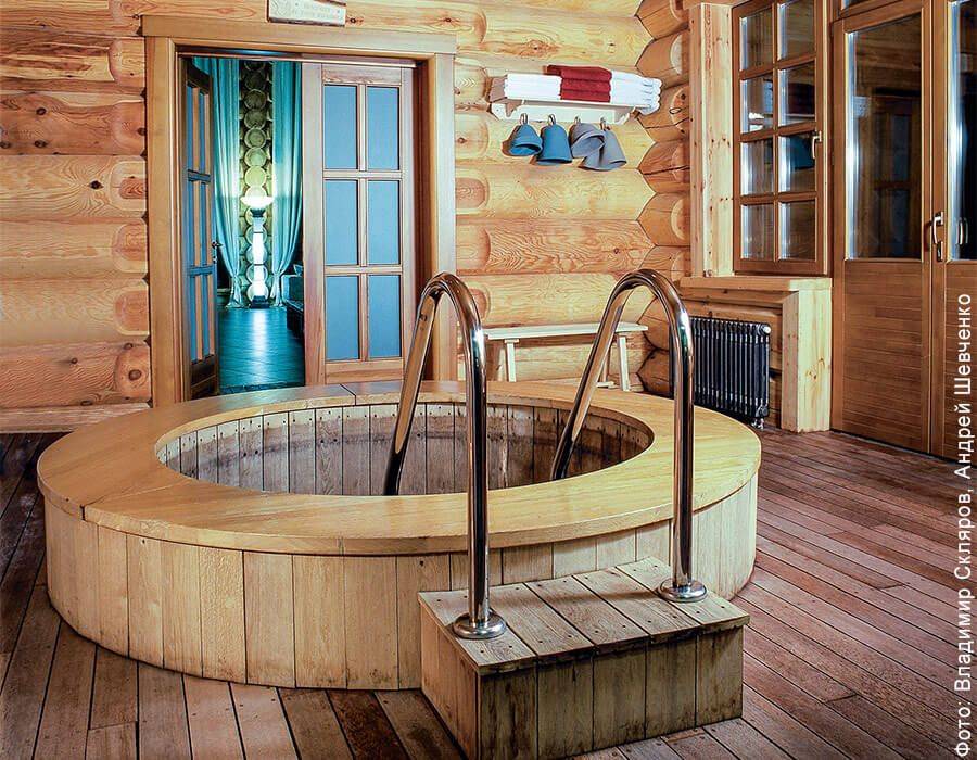Изюминка банной зоны в доме из оцилиндрованного бревна — круглая купель из влагостойкого дерева