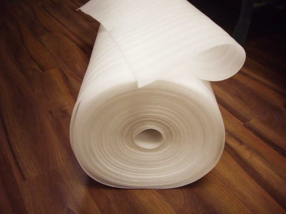 Подложка – изготавливается на основе сшитого по физической и химической технологии ППЭ. Ширина выпускаемых рулонов может достигать 3 м, а толщина варьируется в пределах 2 – 5 мм. Подобный утеплитель из вспененного полиэтилена особенно полезен в качестве подкладки при обустройстве полов из ламината;