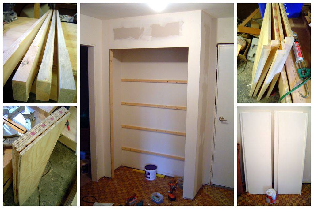 Встроенный шкаф, сделанный своими руками, позволяет максимально использовать доступное пространство. Если существует такая возможность, в качестве низа, крыши, боковых, задних стенок используют элементы комнаты. Редко получается встроить шкаф в стену без обеих боковых стен, это возможно только в нише или при проектировании мебели во всю длину стенки. В любом случае, такой возможностью сэкономить стоит воспользоваться.