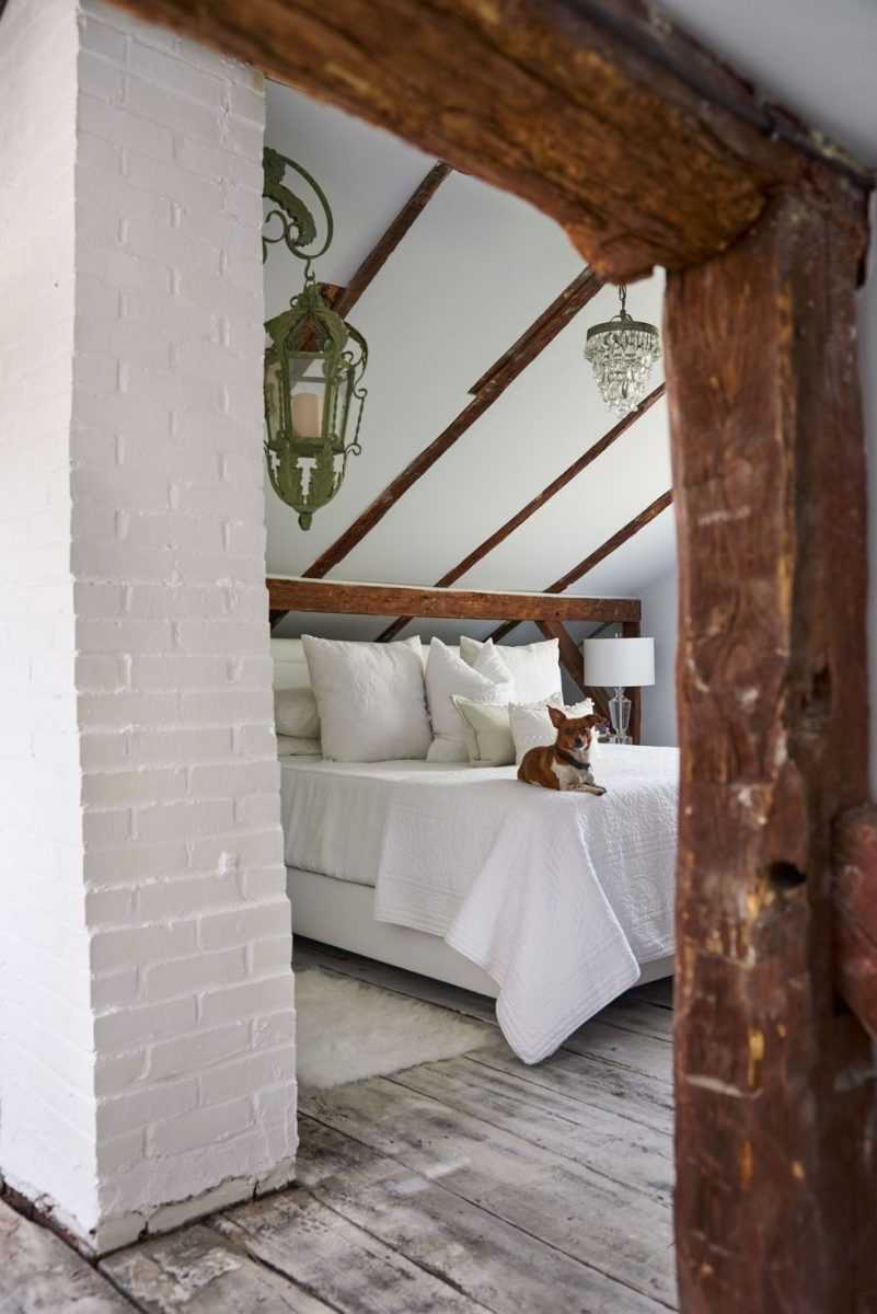Камень или кирпич стен станет отличным вариантом для создания спальни в кантри, лофте или классике.