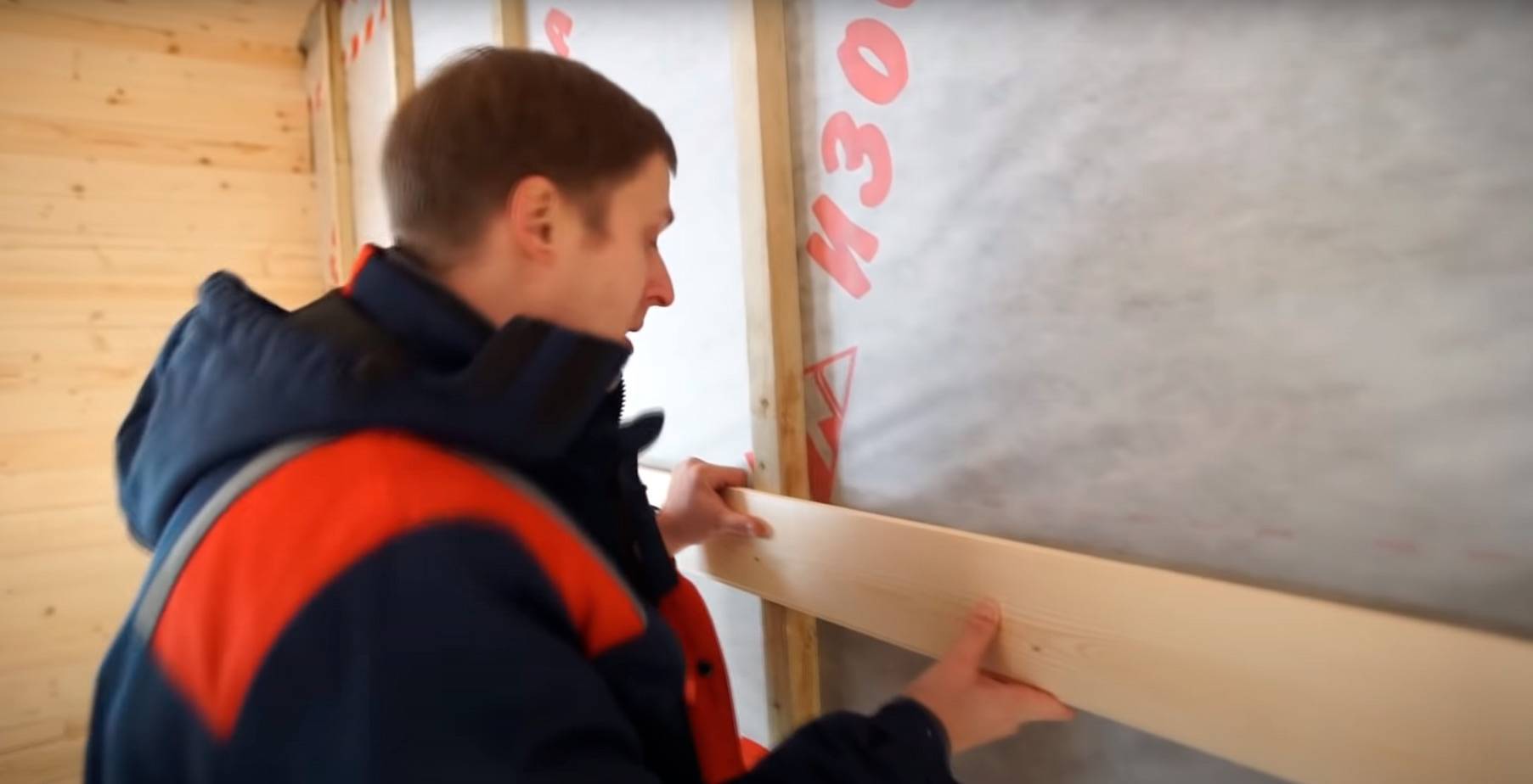 Для вентиляции между пленкой Изоспаном и финишным облицовочным материалом монтируют бруски из древесины, предварительно обработанные антисептиками. Минимальный вентзазор 2 см. Такое решение будет способствовать лучшему отводу влаги и продлит сроки службы конструкции.