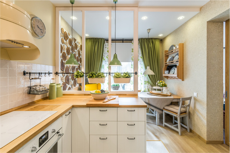 Является практически обязательной деталью кухонного дизайна. Данный элемент поспособствует созданию торжественной обстановки для приема гостей или задаст комнате нужный настрой для романтического ужина.