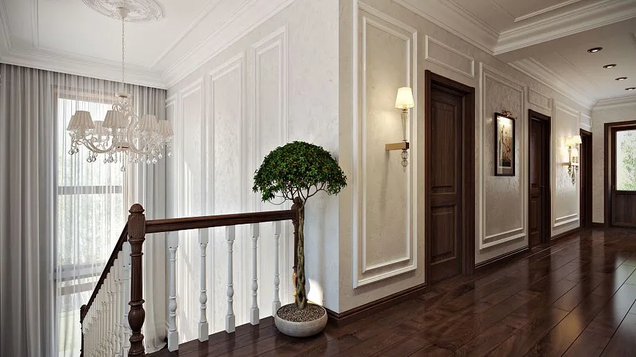 Поэтому не нужно подбирать плинтус к полу, делать из дерева или “под дерево”. Это устаревший прием. Лично я отдаю предпочтение плинтусу из полиуретана, мдф, гипса или деревянного массива.