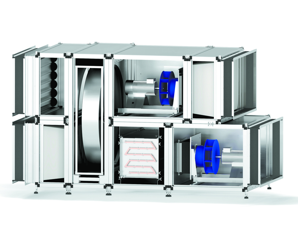 Центральный кондиционер для производственных помещений состоит из стандартных секций забора и подачи воздуха, фильтрации, охлаждения, орошения и нагрева. Для работы требуется подключение к чиллеру. Надежный и долговечный климатический комплекс используется совместно с другими системами — мультизональной, чиллер-фанкойл.