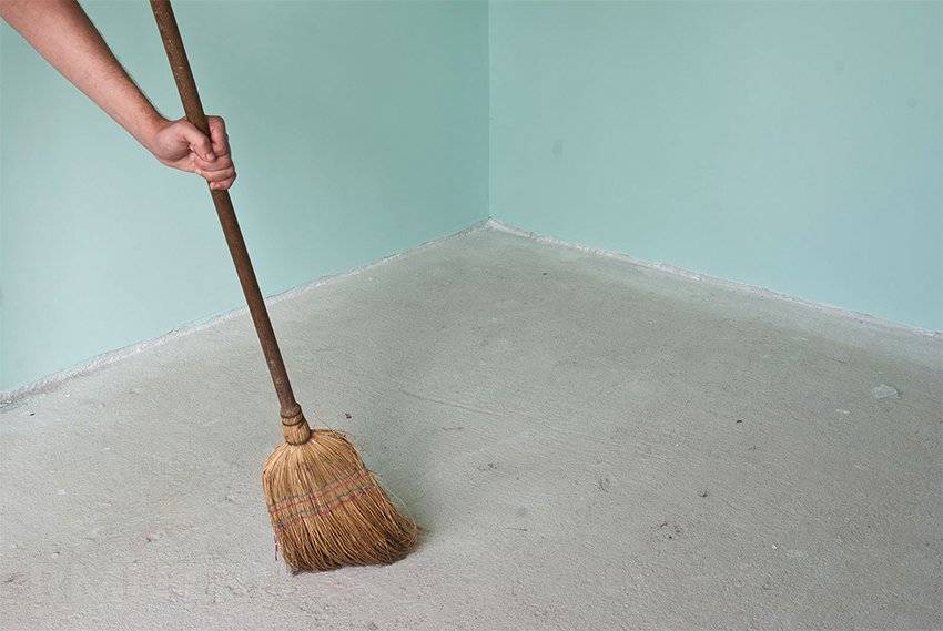 Так как слой из самовыравнивающейся смеси не может быть слишком толстым, при значительной неровности пола сначала выполняют стяжку на цементной (до 50 мм) или гипсовой (до 100 мм) основе. Для этого пол очищают от мусора и материалов, которые разрушаются при небольшом механическом воздействии. После этого по меткам выполняют стяжку и оставляют на некоторое время до полного высыхания. Продолжительность сушки зависит от толщины слоя, влажности раствора и параметров воздуха в помещении и составляет 10–30 суток.