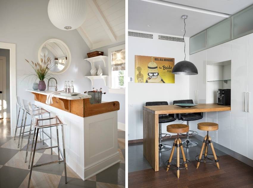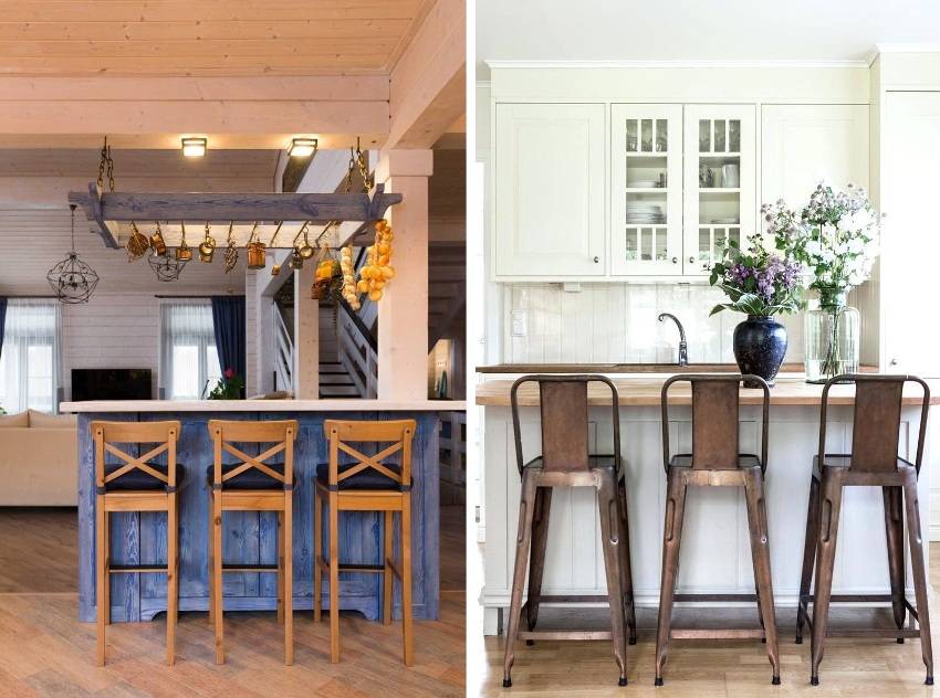 Совет! Для маленькой кухни лучше выбрать барные стулья по типу табуретов, которые можно задвинуть под стойку и освободить место.