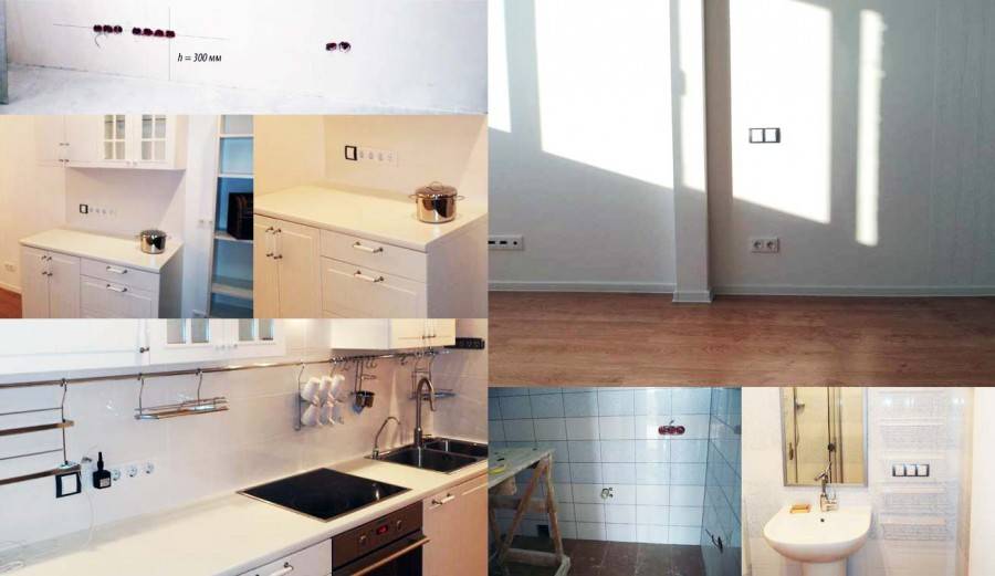 Ведь именно в этом помещении используется максимальное количество приборов. Поэтому вам не только нужно рассчитать оптимальную высоту расположения розеток и выключателей, но и определить их количество и места, где они будут расположены.