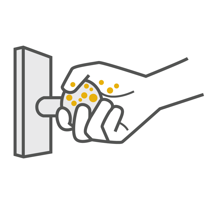 Другой человек прикасается к той же самой дверной ручке, и ему передаются микробы.