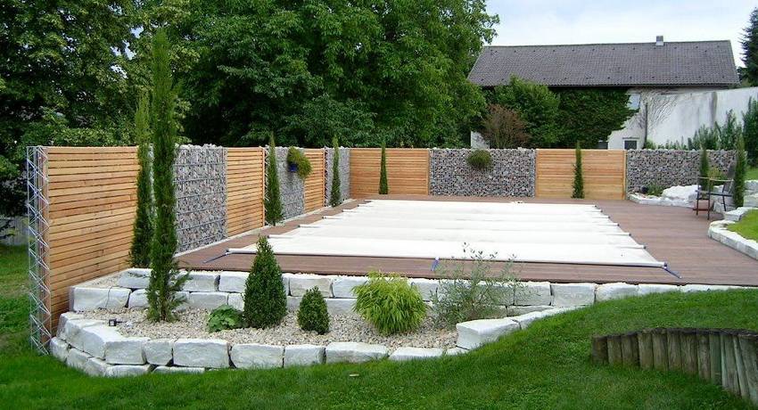 - искусственные водоемы практически всегда выполнены с помощью габионов или пергонов;