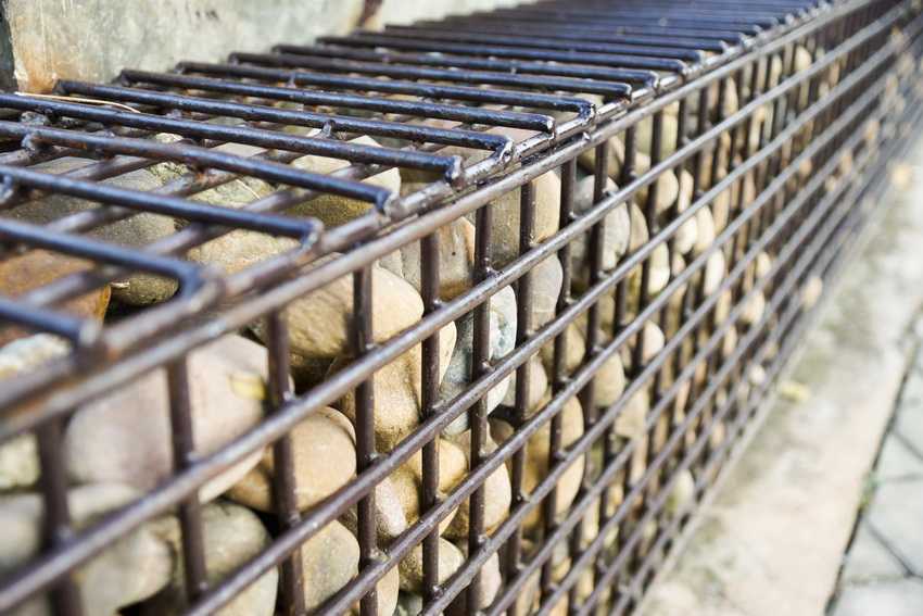 Заборы из габионов представляют собой конструкции различной формы, сооруженные из сетки, наполненной камнями разных видов.