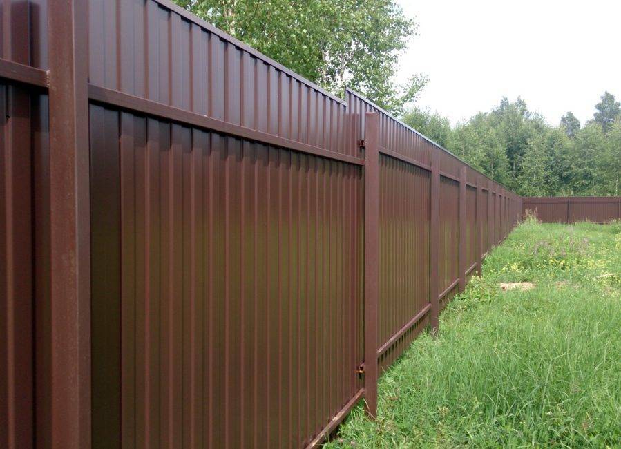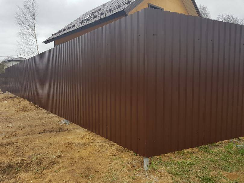 Наиболее подходящие марки для устройства ограждений С-8—С-25, НС-10. При большой высоте, интенсивной снеговой или ветровой нагрузке рекомендуется профнастил с высотой волны 15 мм и более.