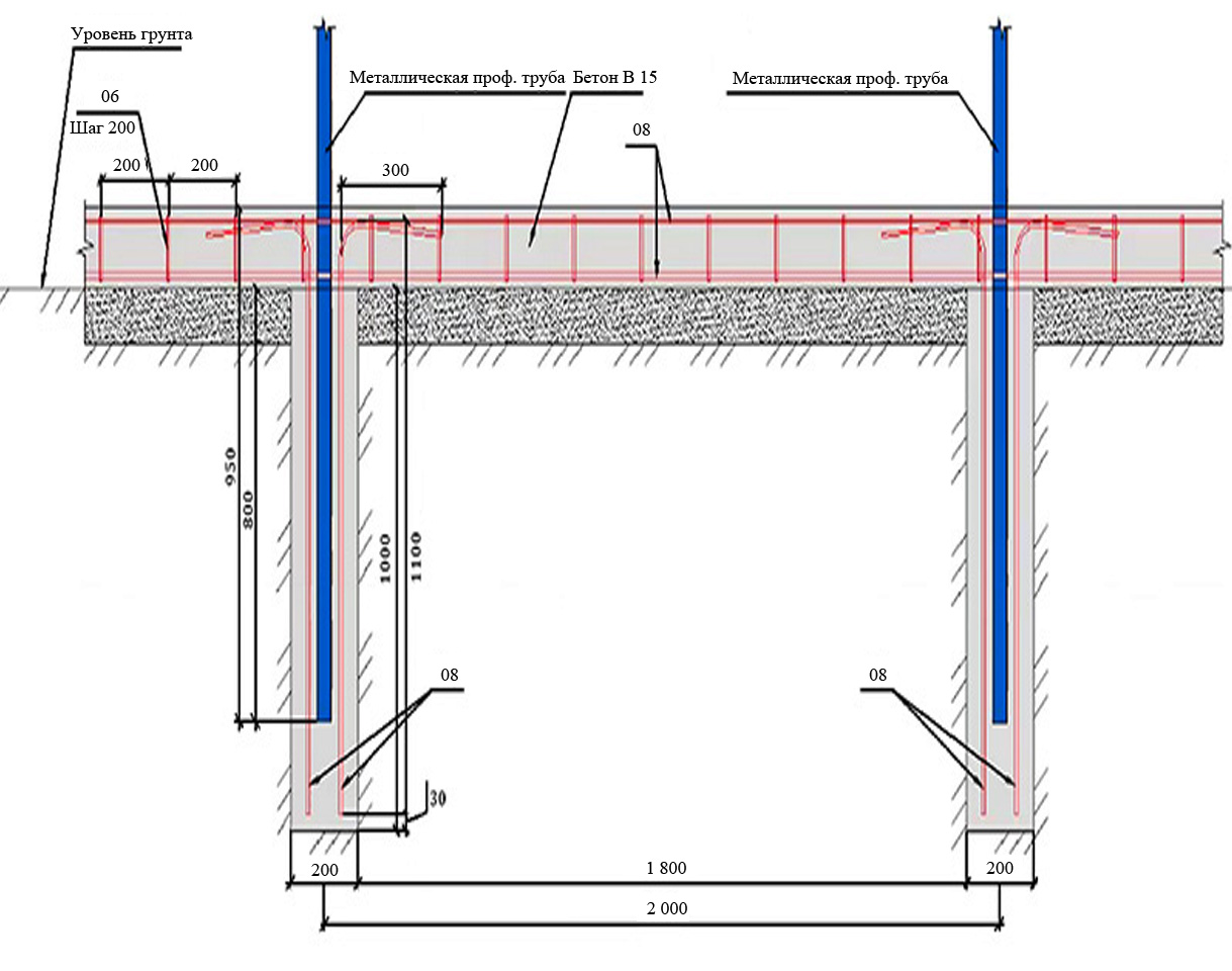 Данные подобного рода чаще всего опускают. Фундамент под опорные элементы чаще всего закладывают ниже уровня промерзания грунта. Благодаря чему основания не подвергается сезонным изменениям грунта. Общий объем просчитывается по умножения всех параметров – глубины, ширины, длины. Места под опорами нужны глубже чем сам ленточный фундамент между опорами, рекомендуется все элементы просчитывать отдельно.