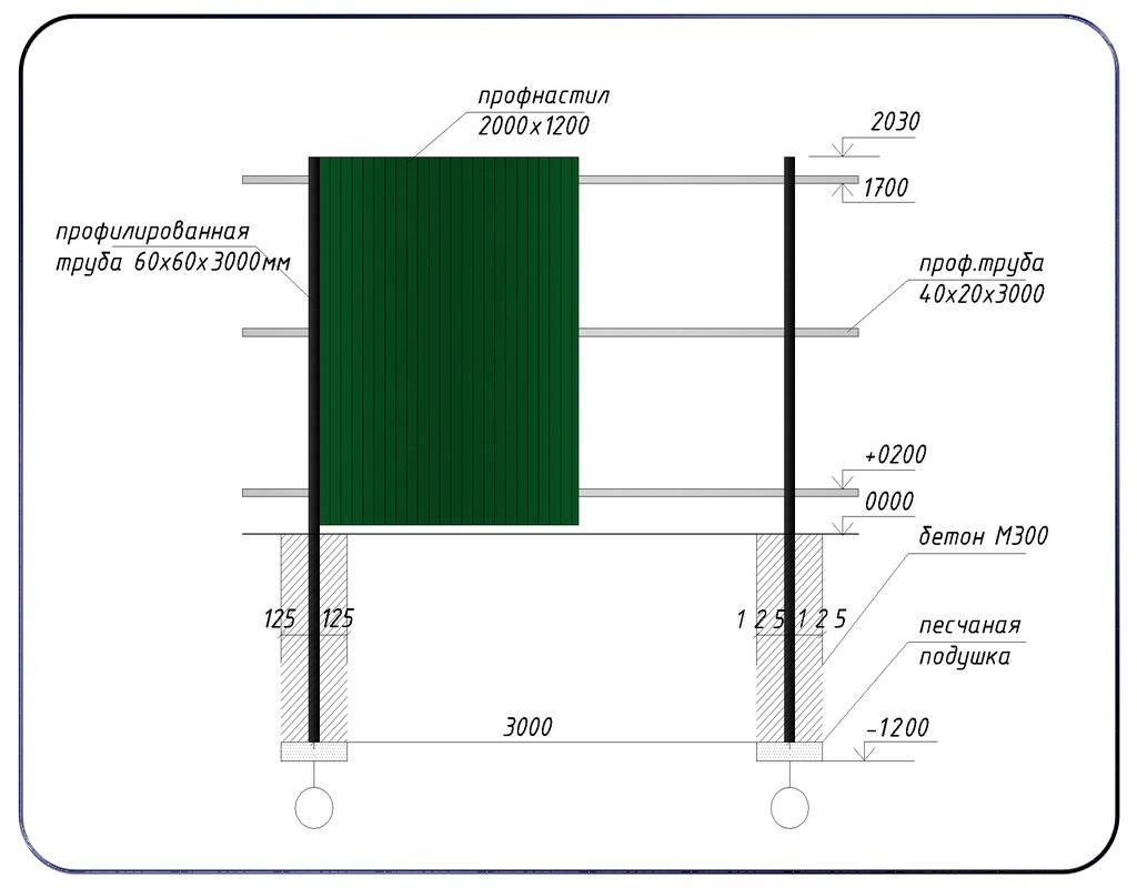 Этап 1. Разработка схемы забора из профнастила: эскиз и чертеж