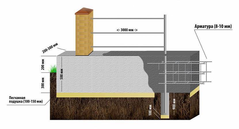 Фото: схема расстояний и используемых материалов при монтаже ограды