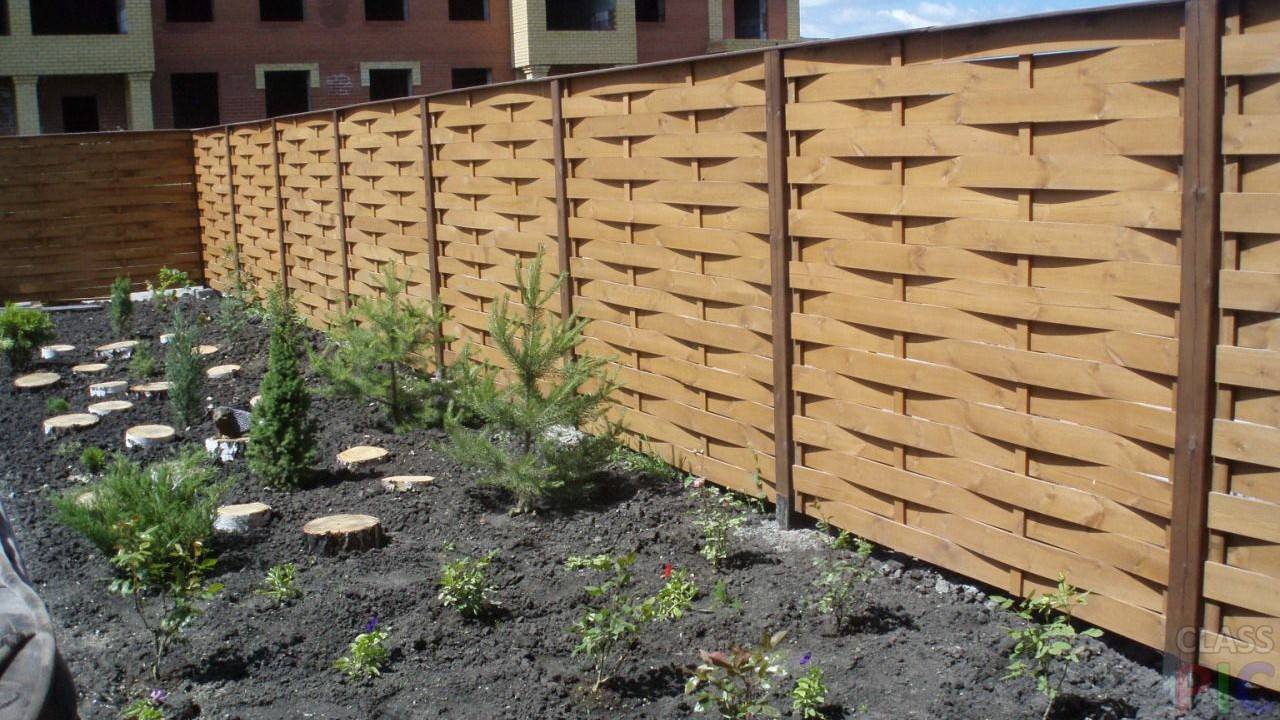 Штакетник — является одним из самых экономичных типов деревянного забора. Изготавливается он различными конфигурациями, с разным шагом штакетин и при разной форме верхнего заборного края. Эти аспекты позволяют спланировать вид ограждения не только из финансовых соображений, но и сообразуясь со вкусом хозяина.
