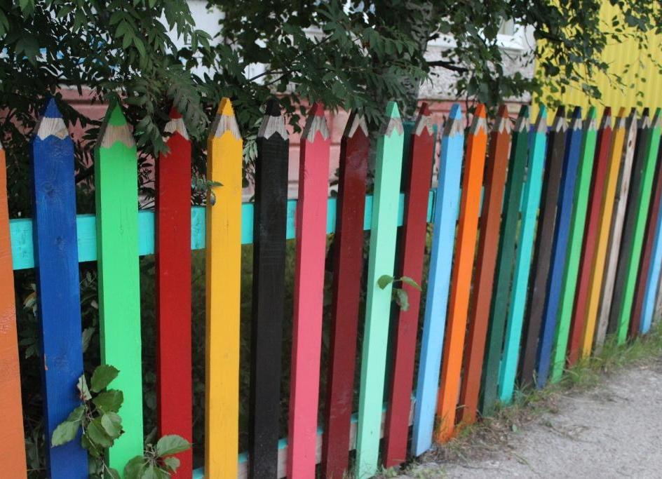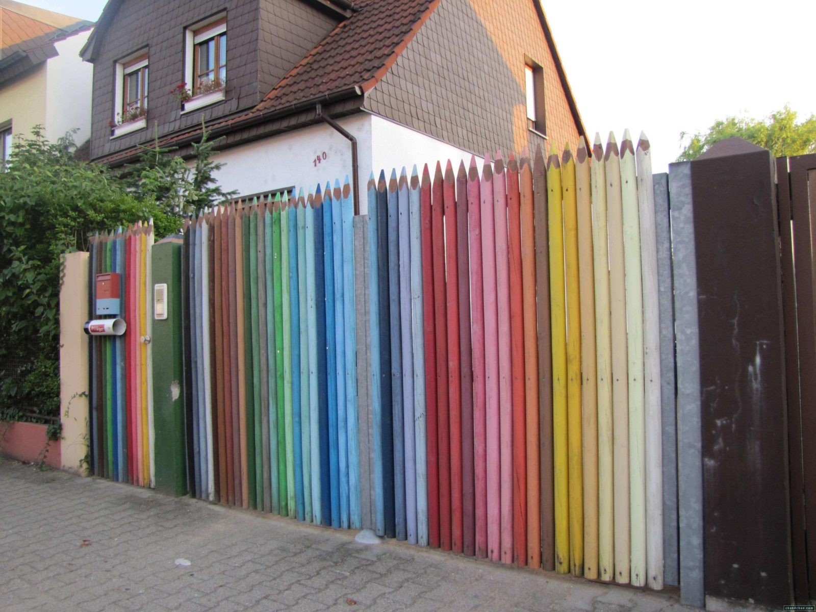 Впрочем, обычный частокол или старую штакетную ограду можно просто оригинально раскрасить.