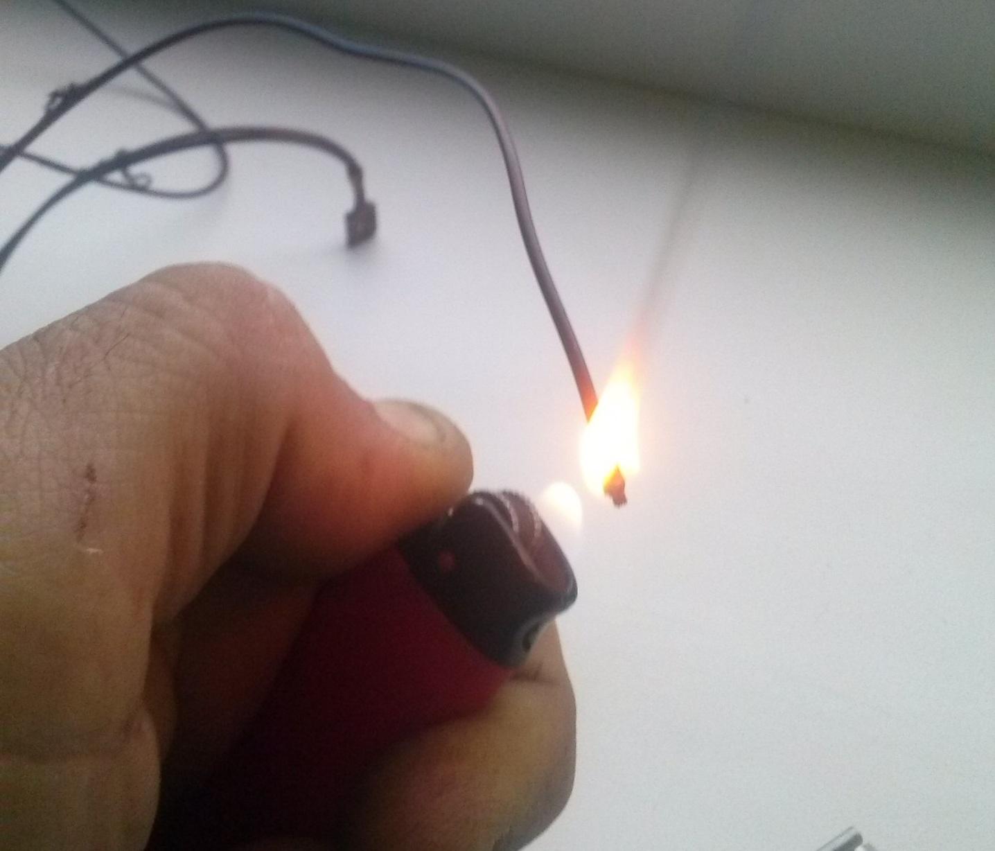 Снятие проводниковой изоляции с помощью открытого огня от зажигалки