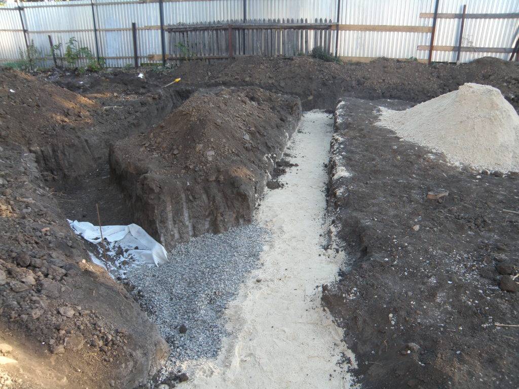 Важно не допустить наличия в нем глинистых включений, удерживающих воду. Разные источники предлагают собственные варианты засыпки — либо полностью используется песок, либо производится послойная засыпка песком и мелким щебнем