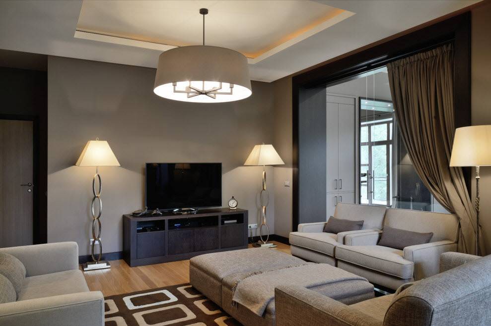 Расстановка мебельных элементов. Главное правило, не нужно распределять мебель вдоль стен, стараясь оставить максимум свободного пространства. В этом случае, как раз, можно пофантазировать, провести несколько экспериментов. Удобство и уют, прежде всего.