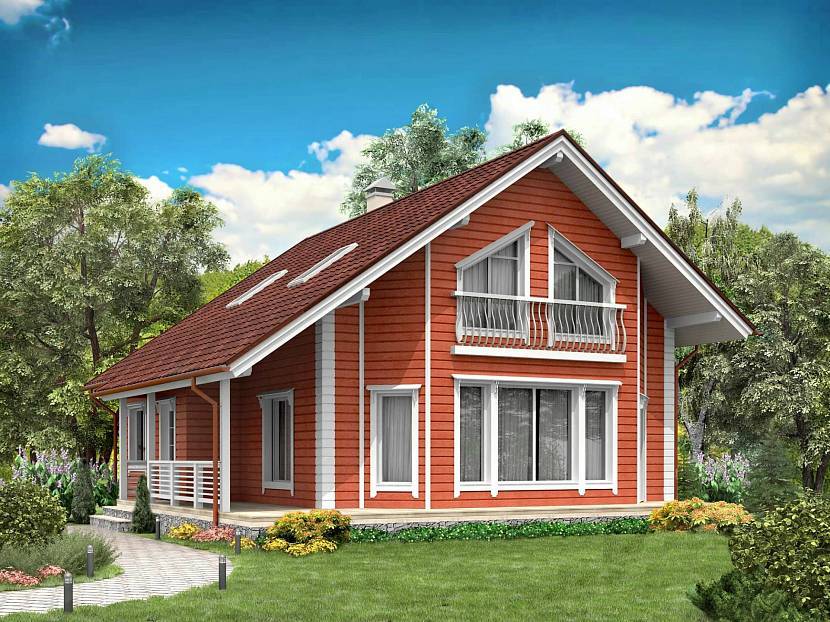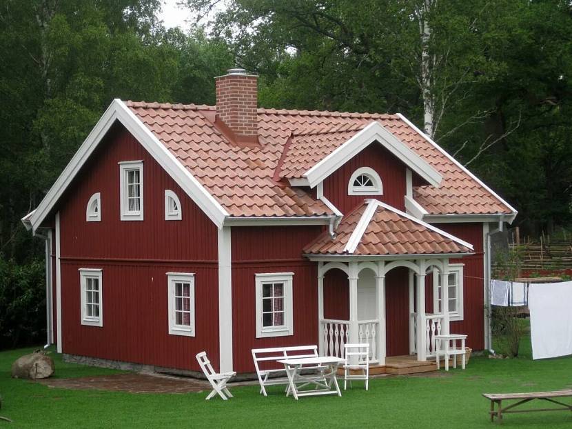Каркасный дом с красной черепицей и фасадомИсточник sds-dom.ru