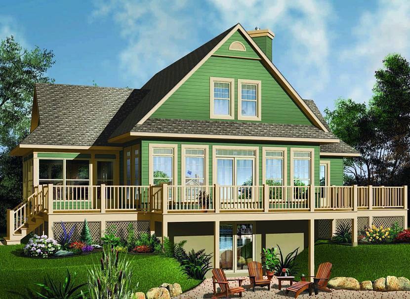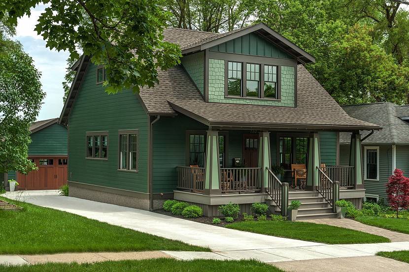 Каркасный жилой дом с фасадом зеленого цвета под деревенский стильИсточник sdlcustomhomes.com