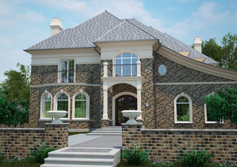 Красивый загородный дом с фасадом из декоративного камняИсточник stargate-rasa.info