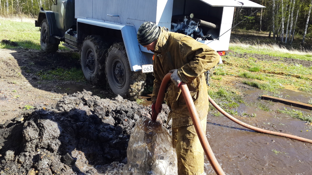 Задействуют одновременно несколько методов, чтобы почистить источник. В первую очередь из шахты максимально удаляют воду и весь крупный мусор. Затем под большим напором подают в колонну воду, размывая заиленное дно. Параллельно при помощи мощного насоса откачивают грязь
