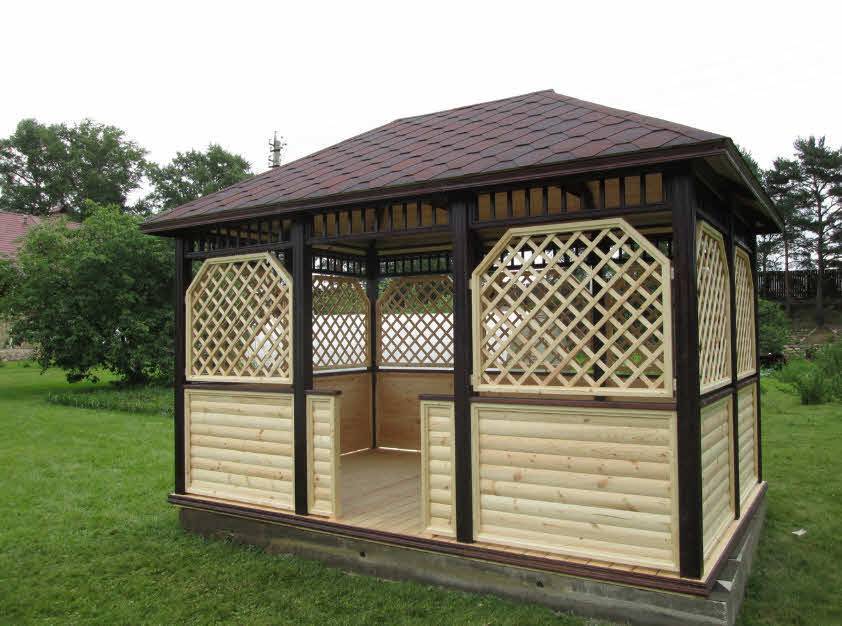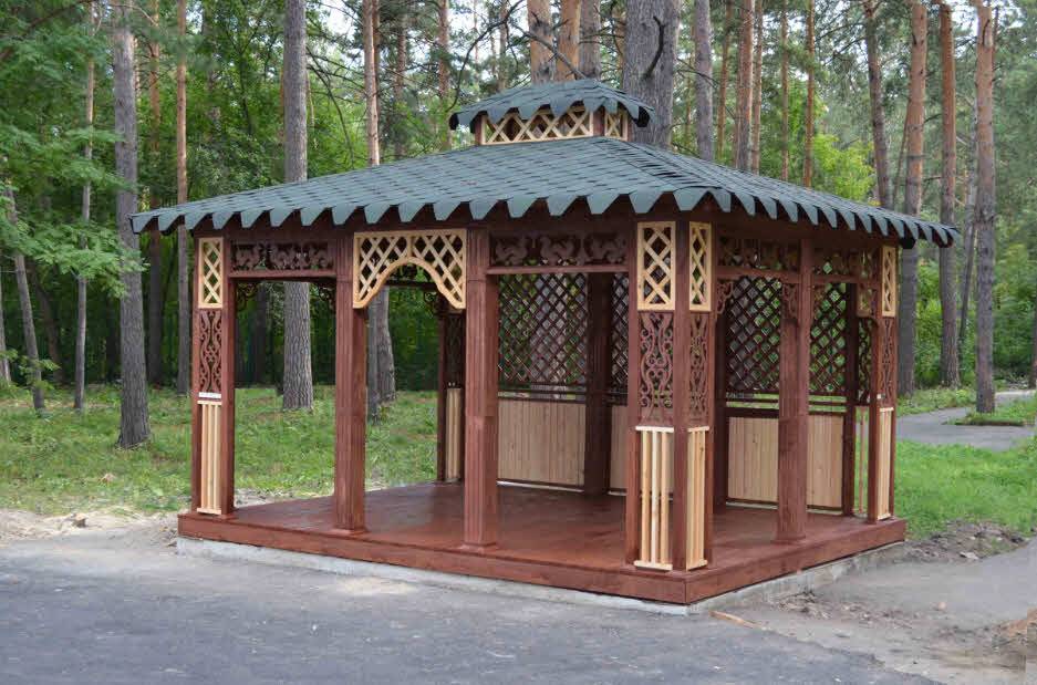 Огромной популярностью при строительстве крытых беседок пользуются изделия в виде ромба, квадрата и шестиугольника.