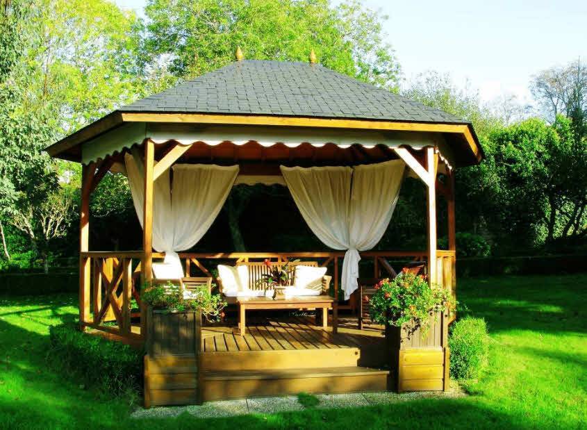Павильоны — это оборудование, которое обеспечивает укрытие от дождя или сильных порывов ветра. Садовая архитектура также будет хорошо работать в летние дни, позволяя спрятаться от солнечных лучей.