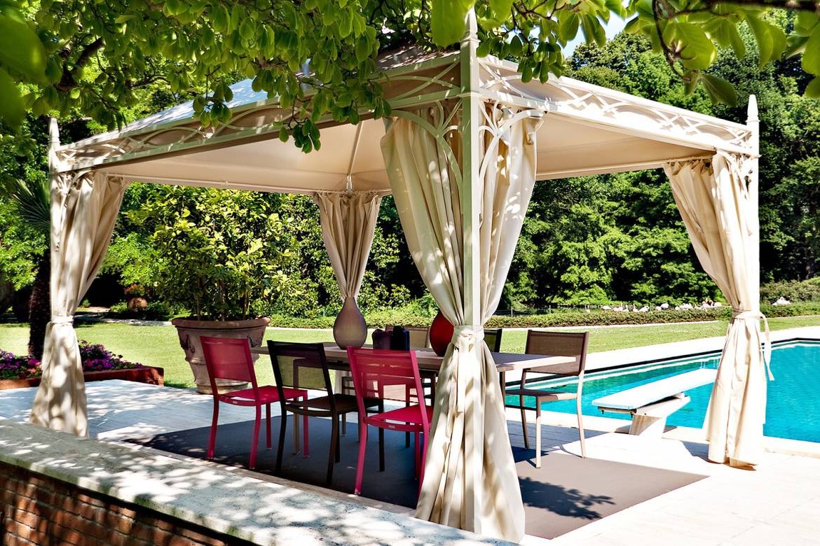Невыносимая жара или неожиданный дождь могут сорвать ваши планы относительно барбекю, так как придется проводить скучные выходные в четырех стенах. Современная зона возле дома будет еще более функциональной, если вы обогатите ее стильной беседкой. Складные павильоны, которые дрожат от сильных порывов ветра, раз и навсегда исчезли. В модных садах их место заняли инновационные перголы — элегантные металлические или деревянные конструкции, которые гарантируют 100% защиту от дождя и резкого солнца, и в то же время добавляют роскошный характер приусадебному пространству.