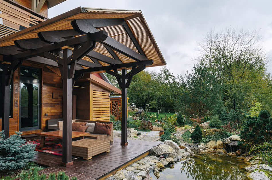 Односкатные беседки, пристроенные к дому: фото красивых пергол