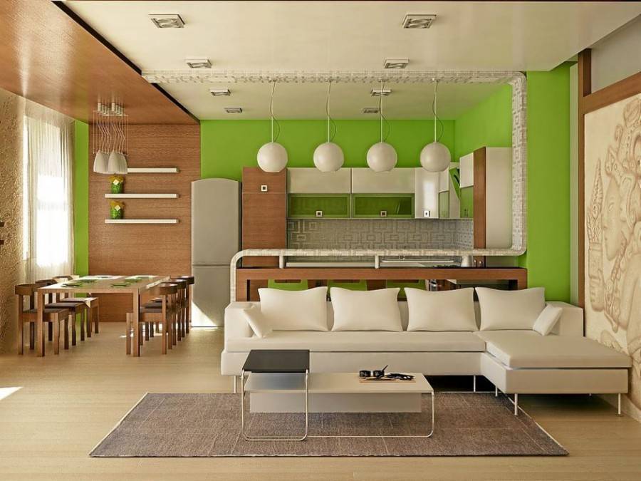 Виртуальное разделение достигается световыми эффектами, а также использованием разных цветов в оформлении. Так, пространство спальни можно отделить созданием дизайна в светлых тонах, а кабинета – в более темных или нанесением различных рисунков. Физическое разделение зоны достигается размещением между ними элементов мебели или перегородкой, ширмой.
