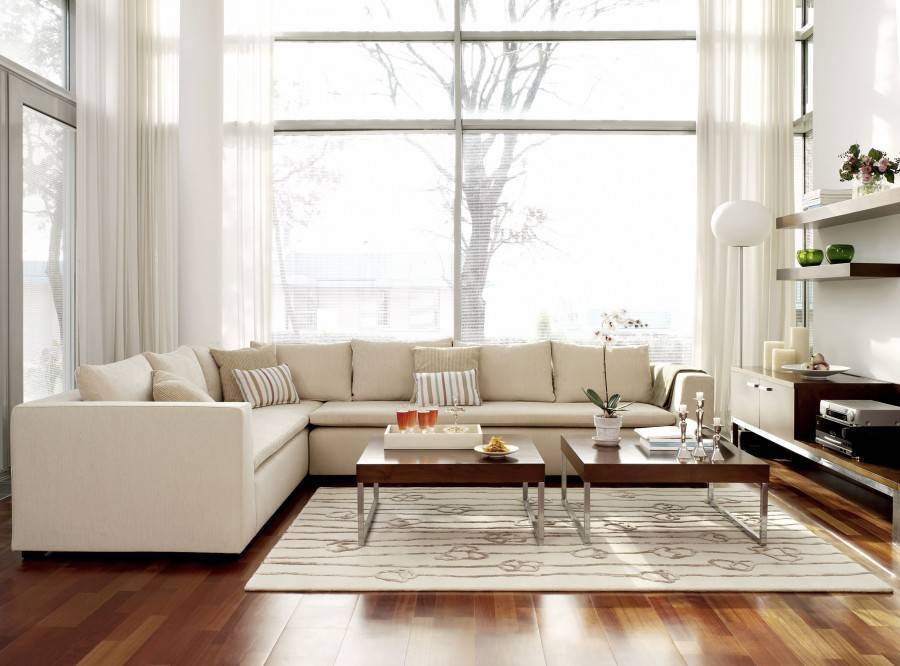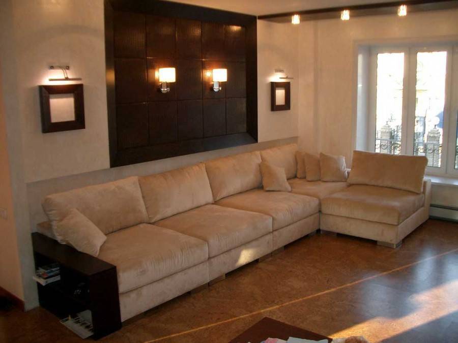 Интересным решением станет модульная мягкая мебель. Помните, диван для зала должен отвечать следующим требованиям: