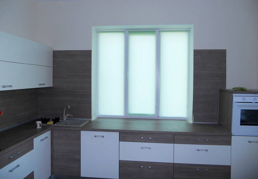 - В отличие от штор жалюзи несложно подобрать непосредственно под размер оконного проема. Они не занимают много места, что особенно актуально для маленьких кухонь.