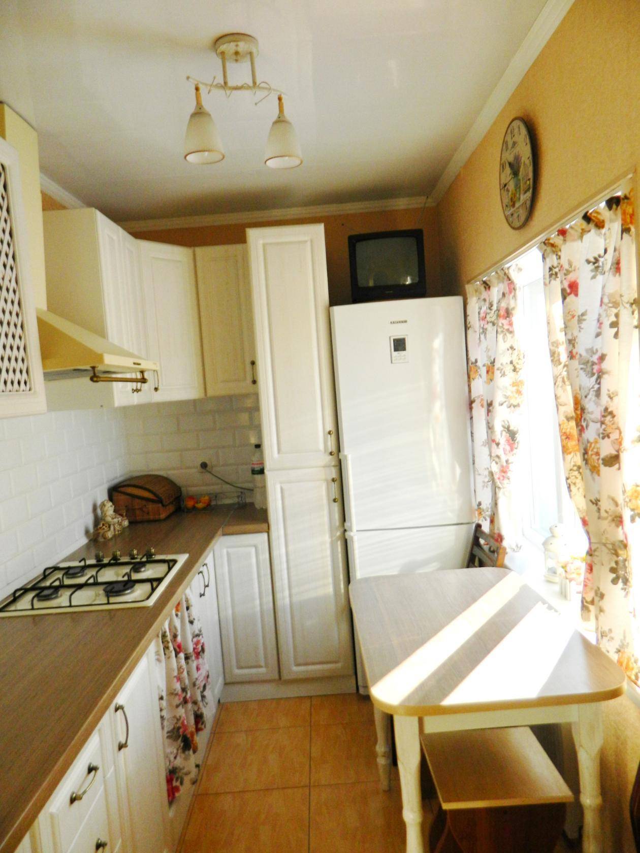 Для обустройства прямой кухни можно подобрать любой вариант дизайна. Каждый из них будет отлично смотреться в таком нестандартном помещении.