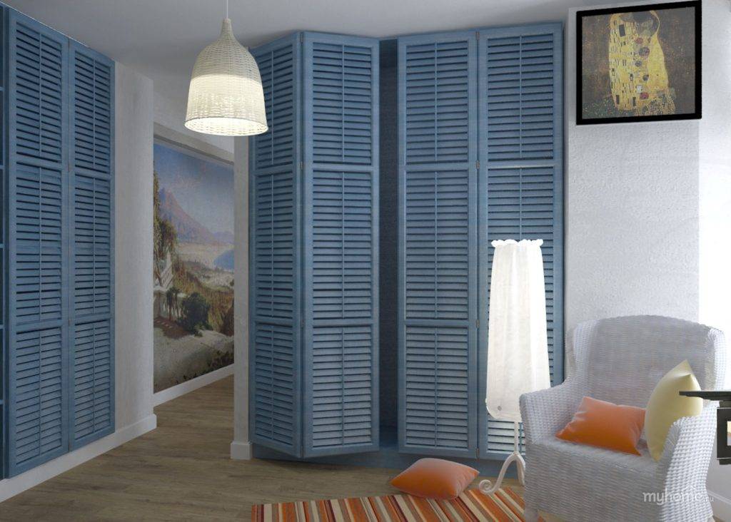- комнаты, не требующие постоянной изоляции. В этом случае деревянные или пластиковые жалюзи выступают в роли межкомнатных дверей;