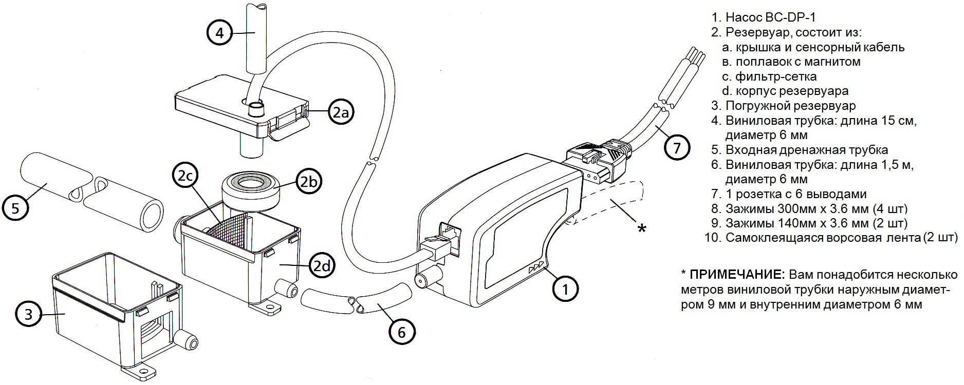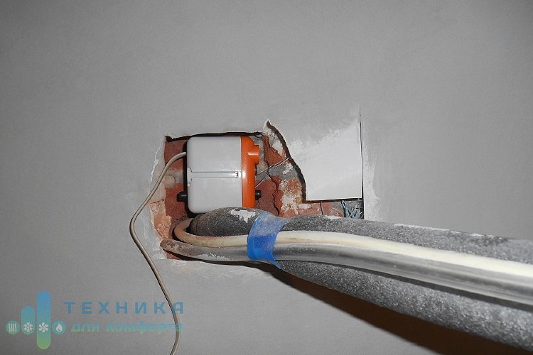- трасса откачки влаги, представляющая собой обычную трубку подходящего диаметра с крепежными элементами для надежной фиксации ее на строительных конструкциях или в декоративных коробах.