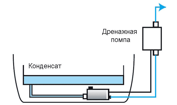 Функция дренажной помпы в быстром и эффективном удалении жидкости. Особо необходимо это в случаях, когда дренажный путь имеет существенную длину при больших перепадах высот, а также для того, чтобы жидкость долго не застаивалась в системе кондиционирования.