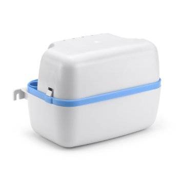 Наливные дренажные помпы для кондиционеров в силу своей конструкции имеют значительные габариты (из-за накопительной емкости) и высокую производительность, чье значение лежит в пределах 80—1500 л в час. С малыми бытовыми охладителями их стыковать нет смысла, устройства предназначены для обслуживания мощных сплит – систем или нескольких небольших кондиционеров одновременно. Насос, которым комплектуются данные изделия, в состоянии обеспечить подъем воды на высоту до 3 м. На фото показана дренажная помпа с сосудом объемом 1.3 л.