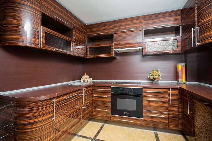 Кухня с фасадами из МДФ, покрытыми шпоном