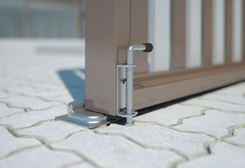 На забор или непосредственно на раму устанавливают фиксатор для паза. Можно установить и автоматические запоры. Самый известный производитель данных устройств – компания NICE.