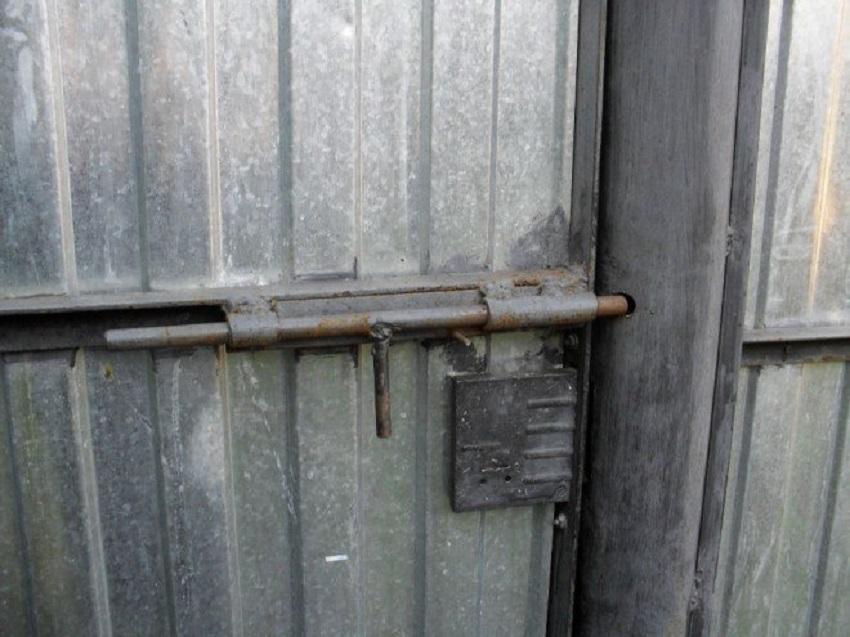- Простой тип – засов. Собирается за короткое время. При этом они отличаются высокой прочностью и при сильных порывах ветра ворота не откроются.
